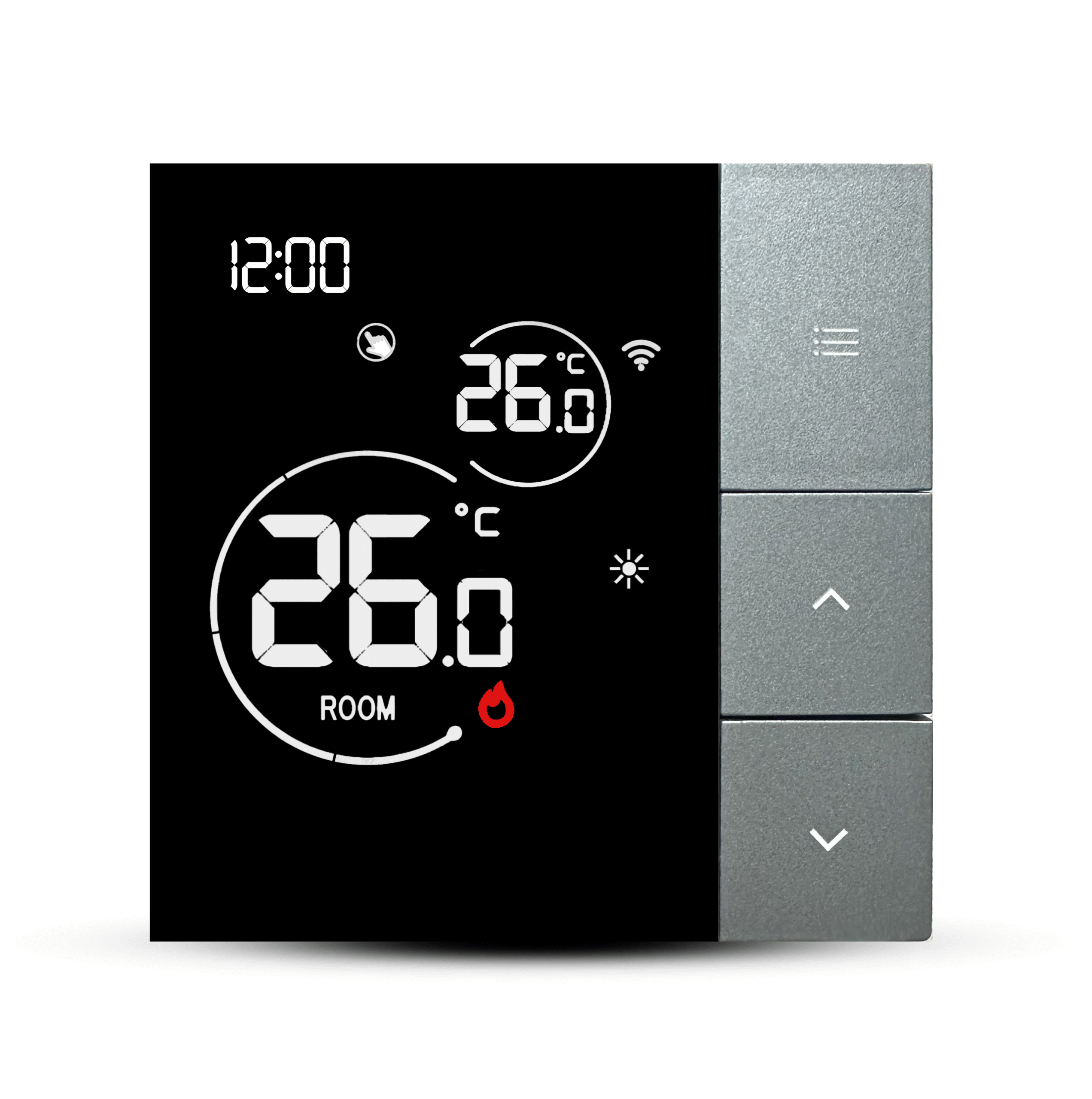 AC620F room thermostat features an attractive modern design, making it ideal for installation in occupied spaces such as offices, hotels, apartments, and commercial buildings.