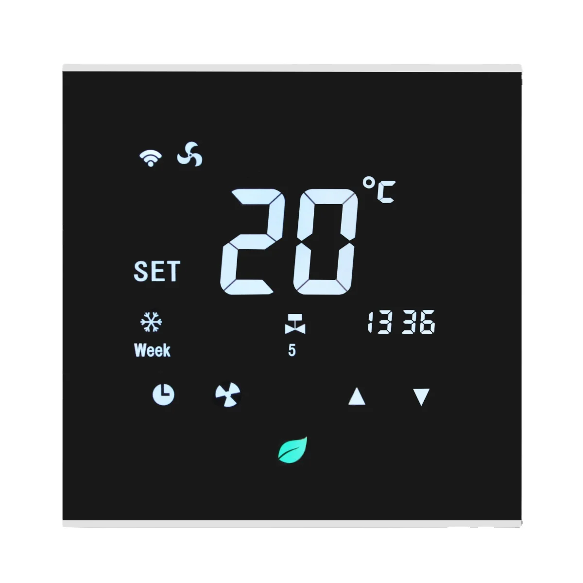 AC8028F room thermostat features an attractive modern design, making it ideal for installation in occupied spaces such as offices, hotels, apartments, and commercial buildings.